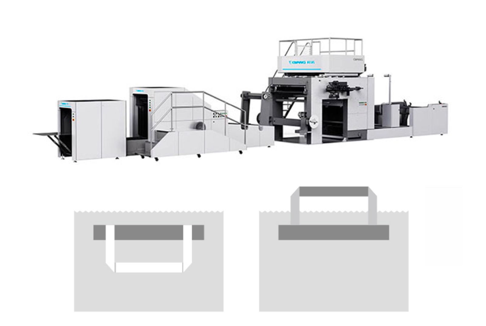 Diese Maschine ist für die Herstellung von Papiertüten mit quadratischem Boden und Flachseilgriffen aus Papierrollen, Papierpatchrollen und Papierrollen mit Flachgriffen konzipiert und ist eine ideale Ausrüstung für die schnelle Herstellung von Papierhandtaschen. Indem sie die Schritte der Griffherstellung, des Griffaufbaus, der Papierschlauchformung, des Papierschneidens und der Beutelbodenformung in einem Arbeitsgang abschließt, realisiert diese Maschine eine wirklich vollautomatische Produktion und kann effektiv Arbeitskosten einsparen. Der einzigartige Herstellungsprozess für Flachseilgriffe und die spezielle Zählfunktion für Fertigprodukte verbessern effektiv die Effizienz der Chargenverpackung von Fertigprodukten durch Benutzer.